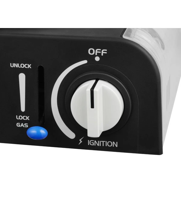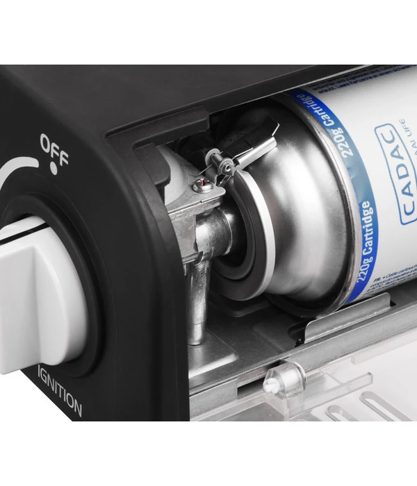 Neben seiner Vielseitigkeit überzeugt der CADAC Gasgrill Safari Chef 30 Compact LITE auch mit seiner Grundausstattung. Er wird mit einer 227g-Gaskartusche betrieben und hat eine automatische Piezo-Zündung. Die Auffangschale fängt Kochreste auf, wenn Sie den Grillrost verwenden, sie dient aber auch als Windschutz, um zu verhindern, dass der Wind den Brenner ausbläst.