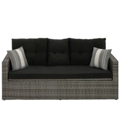 Wie schön, dass es jetzt Gartenmöbel gibt, die den gleichen Komfort bieten wie die Indoor-Möbel. Und die mit dem gleichen hohen Anspruch an Design und Qualität gefertigt werden, aber zugleich mit bester Wetterfestigkeit punkten. Und obwohl diese vielen Pluspunkte inzwischen auf viele Gartenmöbel zutreffen, freuen wir uns, Ihnen mit der Dehner Flecht-Truhenbank ‘Föhr‘ ein ganz besonderes Modell vorstellen zu können. Ein Loungesofa, das Sie mit einem Komfort verwöhnen wird, den so manches Indoor-Sofa nicht hat. Lassen Sie sich bald in jeder freien Minute auf Ihr neues Gartensofa sinken und spüren Sie, wie die vielen Polster und Kissen Sie wunderbar weich umfangen und Ihnen die Stunden versüßen. Mit einer stattlichen Breite von 188 cm bietet die Dehner Flecht-Truhenbank ‘Föhr‘ bequem bis zu 3 Sitzplätze; sind Sie allein, können Sie sich aber auch lang darauf ausstrecken und ein kleines Nickerchen machen. Und ist schlechtes Wetter angesagt, verstauen Sie einfach die Polster und Kissen in dem Raum unter der Sitzfläche. Lassen Sie jetzt die Dehner Flecht-Truhenbank ‘Föhr‘ Ihren Sommer noch schöner machen!