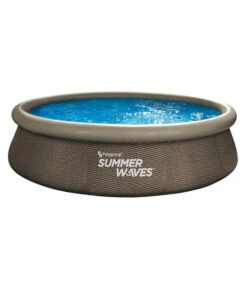 Der Rundpool Rattan von Summer Waves begeistert durch eine unkomplizierte Handhabung. In nur wenigen Minuten ist er aufgeblasen und kann anschließend mit Wasser befüllt werden. Damit das Aufblasen noch leichter geht und eventuelle Falten geglättet werden, legen Sie die Folie am besten vor der Montage für rund zwei Stunden in die Sonne. Dank der zweistufigen Konstruktion aus dreilagigem PVC-Polyester-Mix ist der Summer Waves Rundpool Rattan zudem ausgesprochen robust und widerstandsfähig. So können Sie sich jeden Sommer erneut auf Badespaß in Ihrem Garten freuen. Bestellen Sie jetzt diesen schicken Pool und die heißen Tage können kommen!