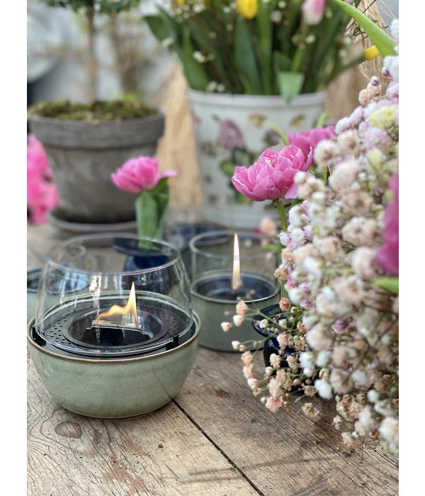 Eine tragbare Schale verleiht dem Tischfeuer Tulip eine edle Basis. Ist sie einmal entzündet, brauchen Sie sich um nichts mehr zu kümmern. Das Feuer brennt nicht nur sicher, sondern sorgt auch für eine stimmungsvolle Beleuchtung. Sollte es draußen kühler werden oder zu regnen beginnen, können Sie die glasierte Schale hineintragen, um im Haus romantische Stunden zu genießen. Egal wo Sie sich am liebsten aufhalten, die Flamme schafft eine wohltuende Atmosphäre bei Tisch. Entscheiden Sie sich jetzt für das Tenderflame Tischfeuer Tulip und machen Sie es sich drinnen oder draußen mit ihm gemütlich!