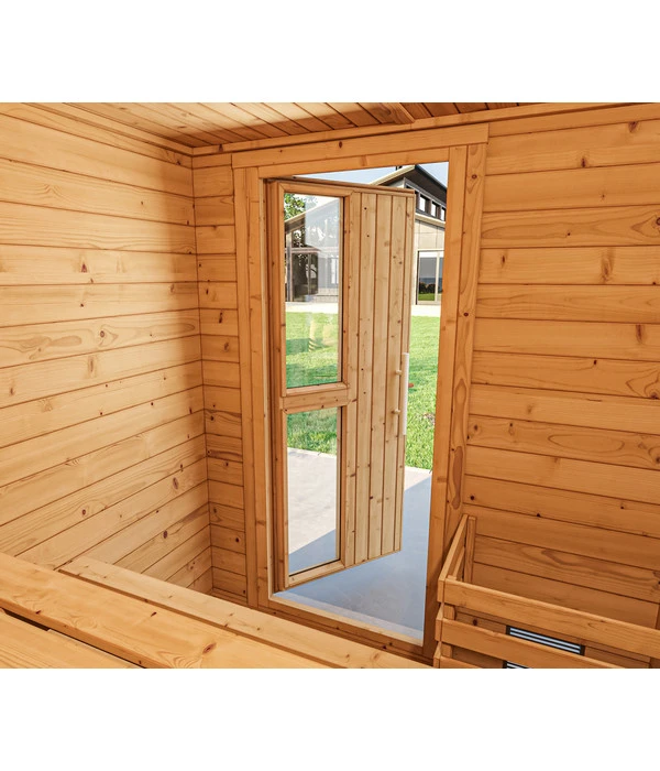 38 mm Vollholz-Bohlen, 9 kW Saunaofen
